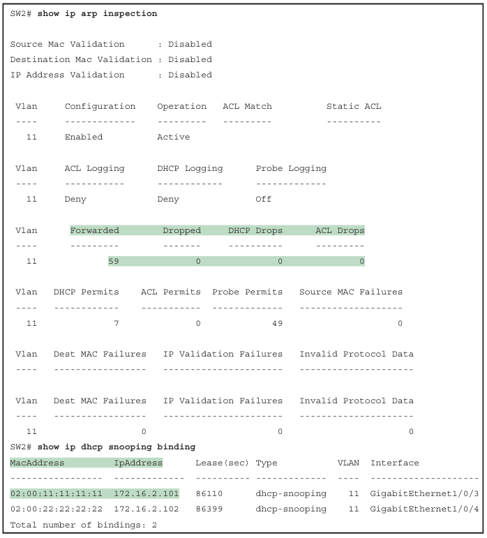 Command show ip arp inspection akan memberikan informasi megenai konfigurasi DAI.