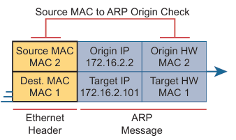 - Message dengan Ethernet header source MAC address tidak sama dengan ARP origin hardware address.